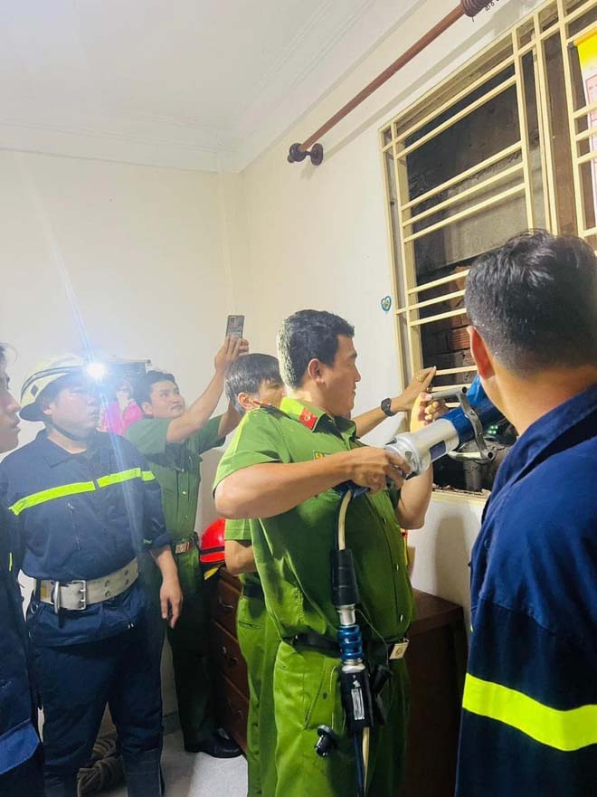 Lực lượng cứu nạn, cứu hộ đã trao đổi, động viên để nạn nhân bình tĩnh, đồng thời, triển khai đội hình banh cắt thuỷ lực và đội hình cứu nạn, cứu hộ bằng dây để giải cứu nạn nhân từ ô cửa sổ ở tầng 3 phía sau nhà số 107.