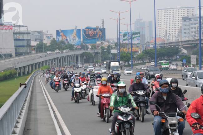 Dù đã gần trưa nhưng nhiều khu vực tại TP.HCM vẫn trong tình trạng sương mù dày đặc, kèm theo đó là bụi bẩn khiến người dân phải bịt kín mít khi ra đường, lo sợ ảnh hưởng đến sức khỏe.