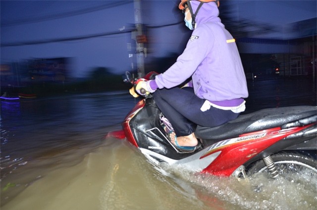 Nhiều đoạn đường ngập đến hơn nửa xe máy |