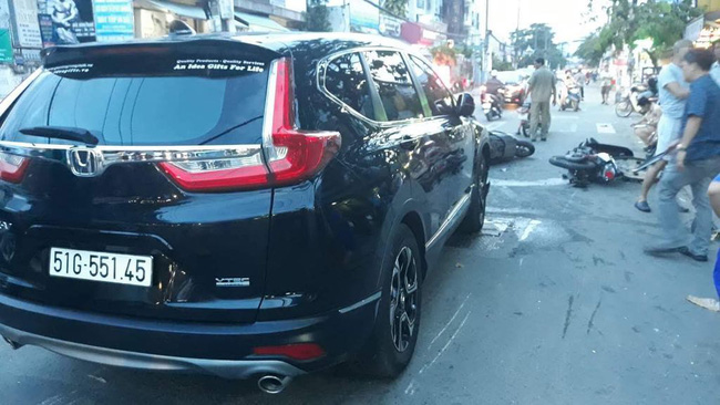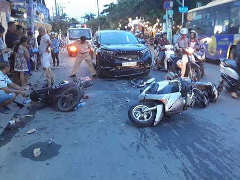 Cụ thể, khi đang lưu thông đến ngã 3 đường Nơ Trang Long – Vũ Ngọc Phan (phường 13, quận Bình Thạnh) thì bất ngờ xe ô tô có biểu hiện lạc tay lái, đâm liên tiếp vào 3 xe máy đang di chuyển trên đường.