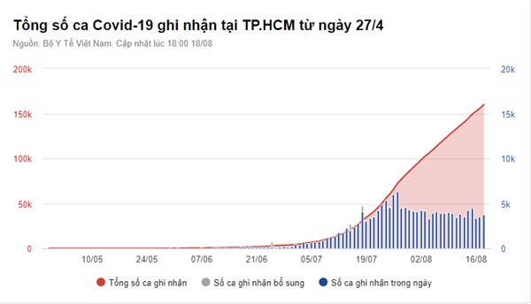 Đặc biệt, huyện Nhà Bè có số ca nhiễm khá ít nhưng 100% ca mắc Covid-19 được ghi nhận trong ngày 18/8 được ghi nhận tại cộng đồng (17/17).