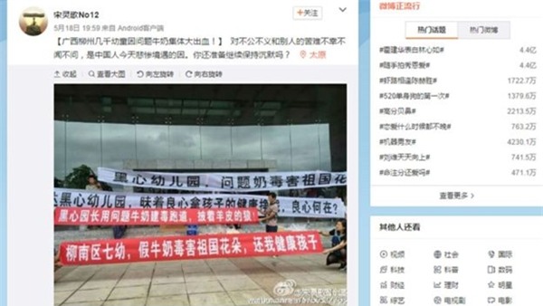 Cụ thể, một số trẻ em tại Quảng Tây đã bị sưng phù, chảy máu cam, sốt cao. Đã có hàng chục, thậm chí hàng trăm trẻ em mắc triệu chứng tương tự. Nhiều người dùng trên Weibo, Wechat cho rằng việc các nhà trẻ sử dụng sữa kém chất lượng là nguyên nhân gây ra tình trạng trên.
