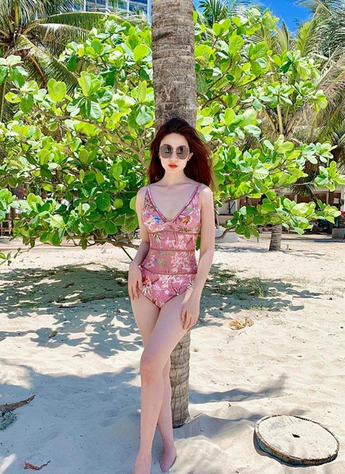 Không mặc những bộ bikini cắt xẻ, Lương Thanh ưa chuộng mẫu đồ tắm một mảnh. Cô vẫn biết cách khoe hình thể thông qua phom dáng định hình vòng eo dạng corset cùng đường xẻ ngực gợi cảm.