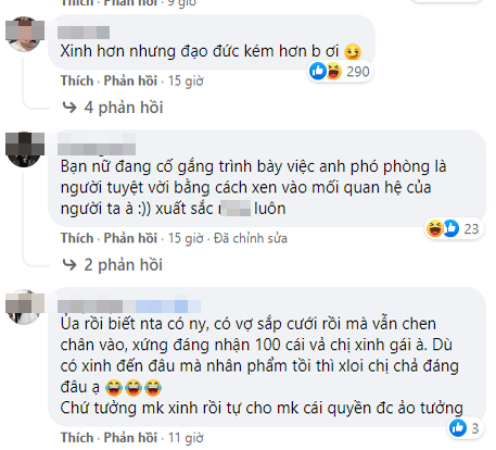 Rất nhiều gạch đá từ các Netizen đã đổ dồn về phía cô gái trẻ với vô số những lời chỉ trích, thậm chí là mắng mỏ cay nghiệt. Hầu hết ai cũng cho rằng xinh mà nhân cách kém thì cũng vứt, việc cố tình trà đạp lên hạnh phúc người khác vì hạnh phúc của riêng mình là không thể chấp nhận và tha thứ được...