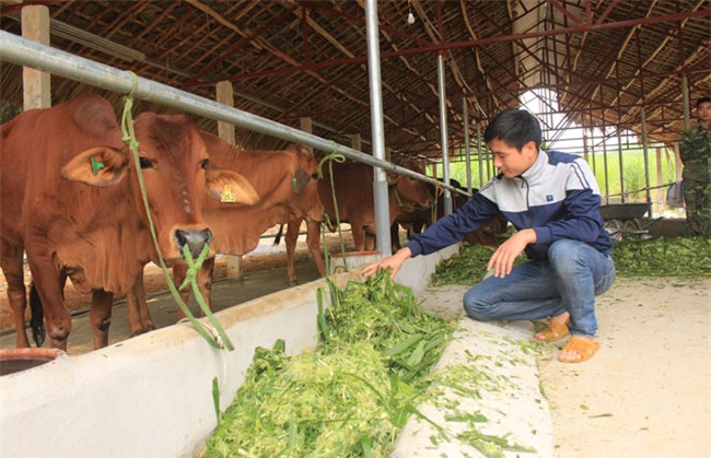Trai phố Đinh Văn Tuấn đang chăm sóc đàn bò sinh sản trong trang trại chăn nuôi theo hướng hữu cơ do mình gây dựng trên bản người Mông, xóm Đồng Tâm, xã Động Đạt, huyện Phú Lương, tỉnh Thái Nguyên.