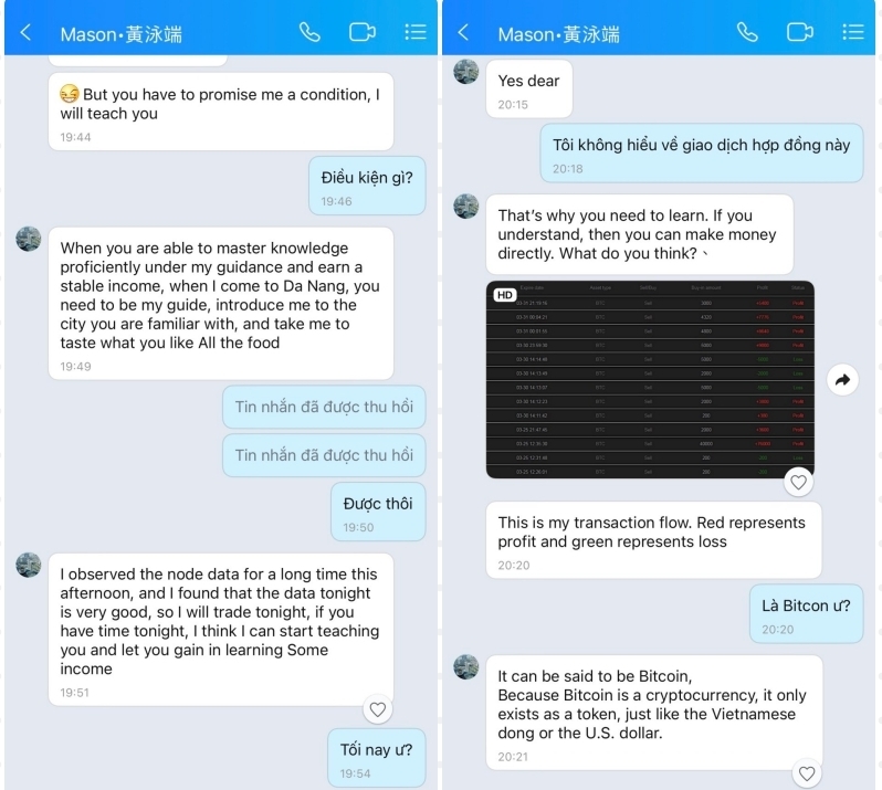 Một đối tượng lừa đảo mang tên Mason đang dụ dỗ con mồi đổ tiền đầu tư.