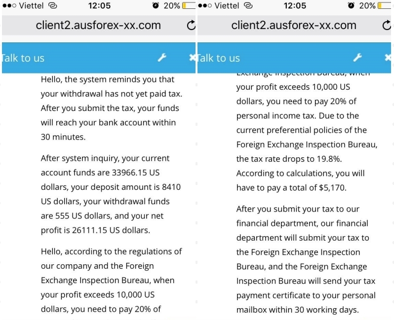 Tuy nhiên sau đó, các đối tượng lừa đảo tung chiêu, không cho P.N. rút tiền về tài khoản. Liên hệ với nhân viên của Ausforex-x.com, cô gái được thông báo là do cô đặt lệnh rút tiền sai, khiến số tiền trong tài khoản tụt xuống.