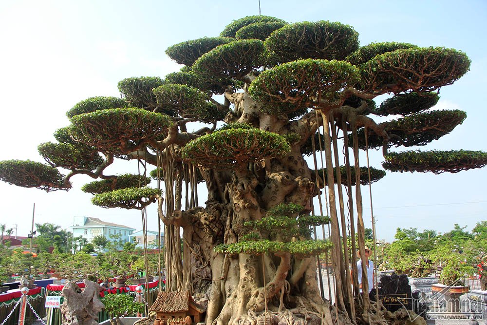 Ông Nguyễn Viết An (Ban Tuyên truyền, BTC triển lãm) cho biết: Cây 'Đại thế vân tùng" có nguồn gốc từ Phú Thượng (Hà Nội), được một người ở Nam Điền (Nam Trực, Nam Định) bán cho anh Nguyễn Văn Oai (Thái Bình). Anh Cao Văn Phú mua lại với giá gần 10 tỷ, sau đó cho dát 5 cây vàng trị giá 185 triệu vào chậu. Cây cao 3,8m, rộng 2,7m, có tuổi đời trên 60 năm.