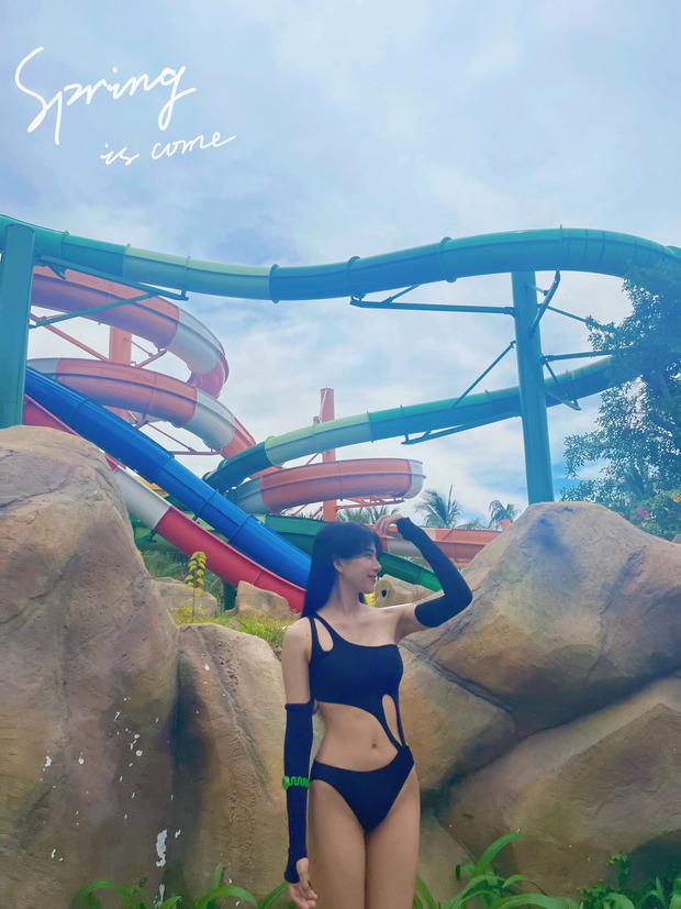 Khánh Vy - vợ Phan Mạnh Quỳnh khoe dáng với bikini cut-out độc đáo. Người đẹp tiết lộ: "Chơi tan nát hết các trò cảm giác mạnh và chụp rất nhiều ảnh có thể. Nếu năm sau đẻ không có ảnh đăng mình sẽ có ảnh đăng dần".