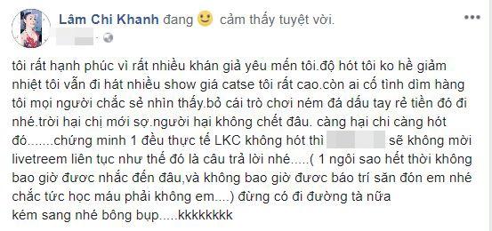Lâm Khánh Chi công khai "vỗ mặt" khi bị chê hết thời.