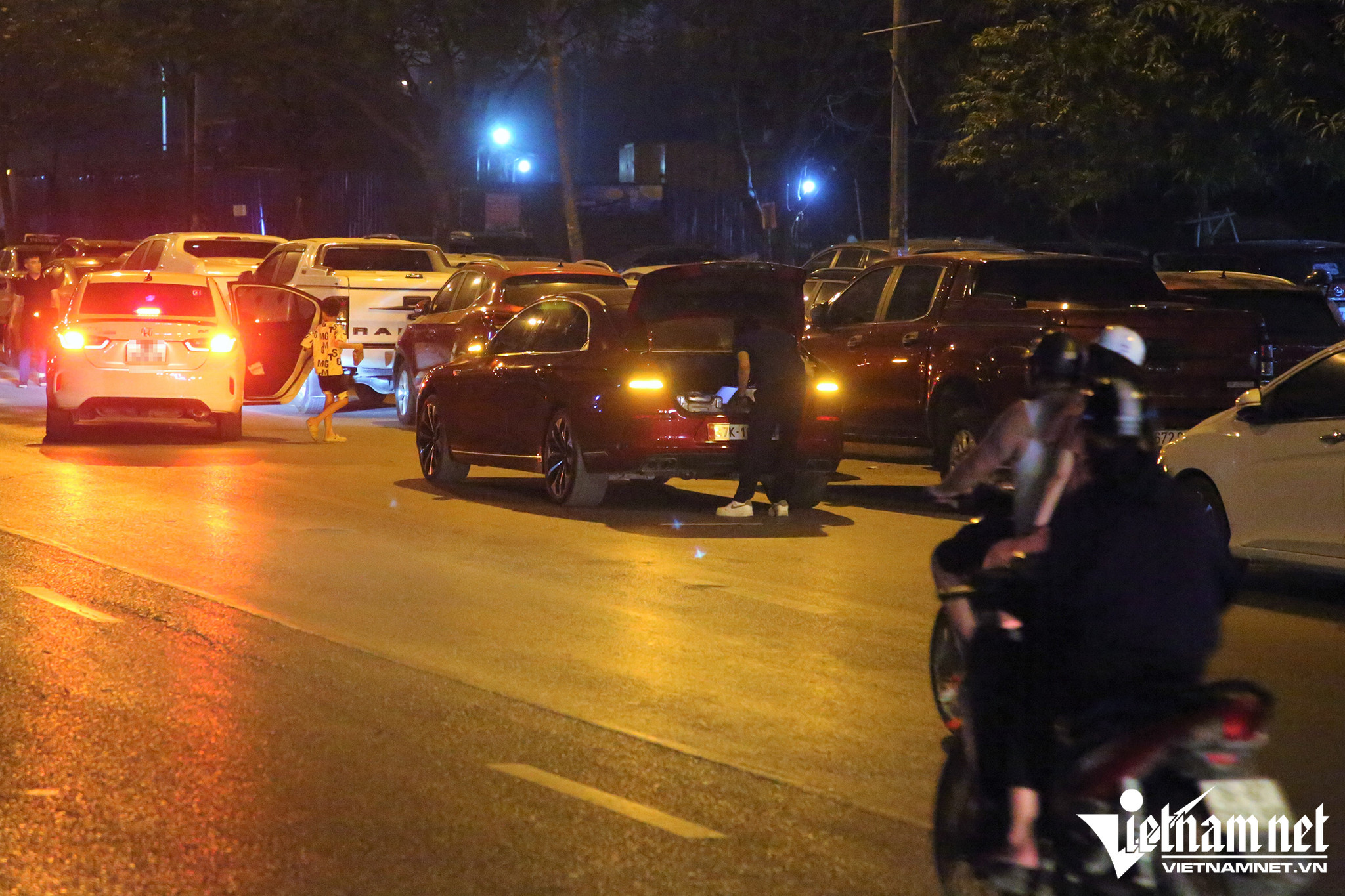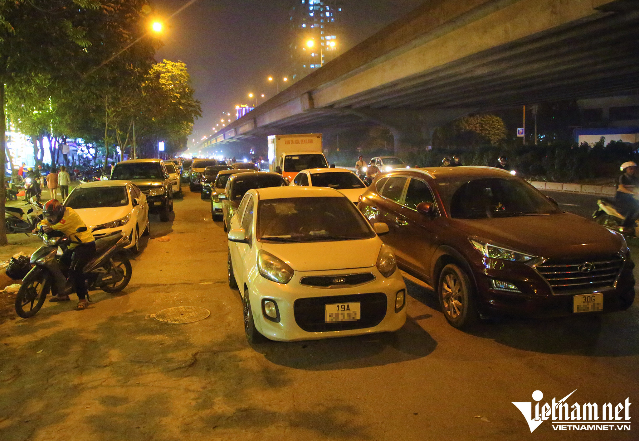 Ghi nhận của PV VietNamNet vào 22h cùng ngày, có hàng trăm ô tô đỗ dàn hàng 2, hàng 3 chiếm nửa lòng đường Nghiêm Xuân Yêm. Dãy ô tô này kéo dài hơn 500 mét từ số 1 Nghiêm Xuân Yêm đến cổng Nghĩa trang Kim Văn Kim Lũ.