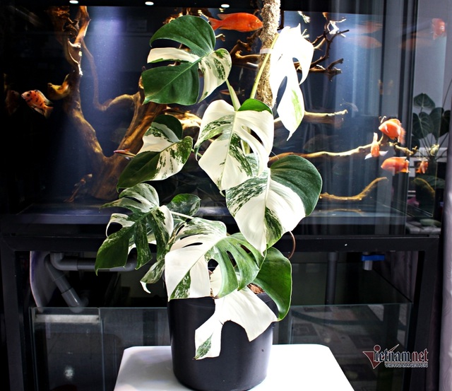 Cây Monstera albo được anh Long mua với giá khá đắt hiện đã thích nghi, phát triển tốt trong điều kiện bình thường (Ảnh: Nguyễn Sơn).