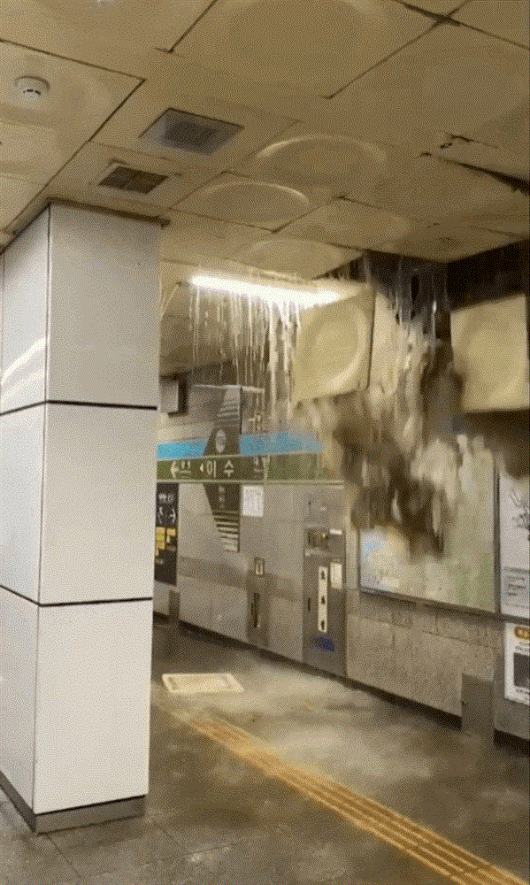 Cơ sở hạ tầng, hệ thống giao thông của thành phố Seoul bị hư hại lớn do ảnh hưởng của mưa lũ. Trang Allkpop đưa tin, mưa lớn đã khiến một phần trần ở ga Isu thuộc tuyến tàu điện ngầm số 7 tại Seoul sập xuống.