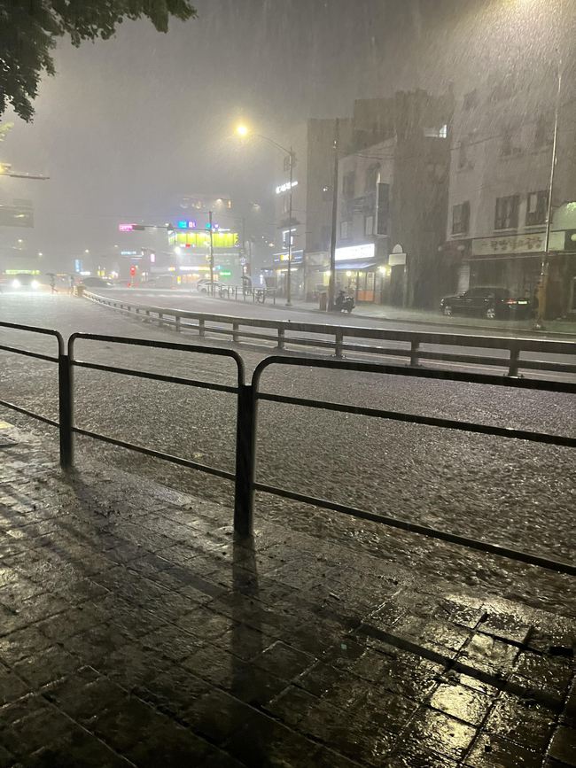 Theo chị Nhã My, 28 tuổi, một người đang sinh sống và làm việc tại Kondae, Seoul, mưa lớn kéo dài cả ngày 8/8. "Mưa như trút nước, mưa xối xả", chị chia sẻ rằng đây là năm đầu tiên lên Seoul sinh sống và chứng kiến cảnh tượng mưa lớn đến như vậy. Ở Gangnam - "khu nhà giàu" của Seoul chứng kiến tình trạng ngập nặng.