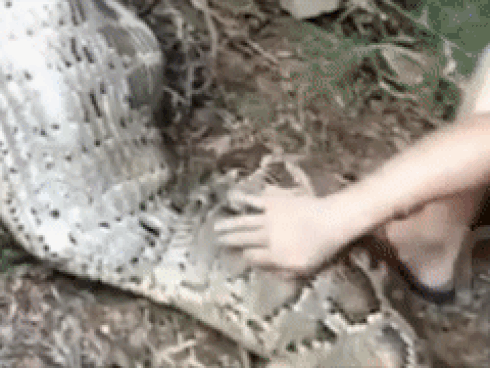 Trăn Nam Mỹ khổng lồ bị dốc ngược, ép nôn trả con dê