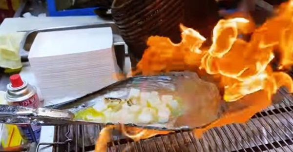 Những con sò ngập trong "biển lửa" khi được người bán hàng nướng ngay trước mặt khách.