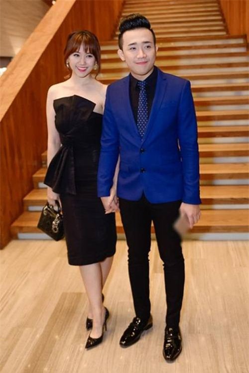 Quần skinny và những đôi giày lấp lánh, giúp Trấn Thành vừa tông xuyệt tông với bà xã, lại cũng rất nổi bật trên thảm đỏ.