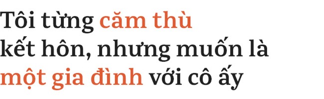 Tôi từng tuyên bố thẳng với mọi người rằng: "Tôi căm thù kết hôn". Tất cả những mối tình trước đó tôi quen, những người bạn gái của tôi đều hiểu rằng tôi rất ghét bàn tới chuyện đám cưới như thế nào, tôi rất sợ điều đó. Tôi không thích ràng buộc, tôi là người mê sự tự do khủng khiếp. Nhưng tự dưng với người con gái này, tôi có cái cảm giác của gia đình, muốn an phận. Tôi không hiểu tại sao. Chỉ là đôi khi ở bên cô ấy, tôi cảm thấy bình yên, đủ thú vị, đủ sự chia sẻ, để mình phải nghĩ đến gia đình.