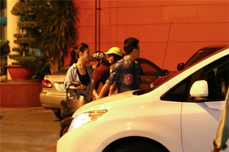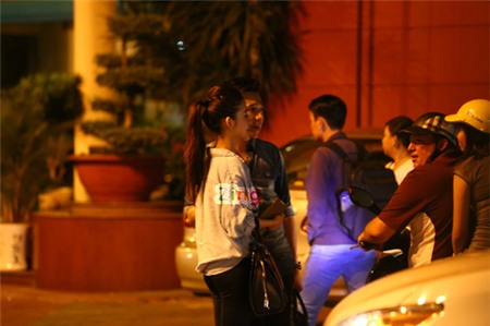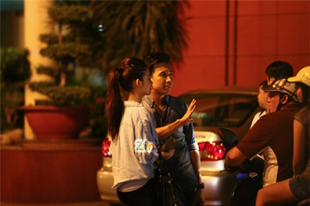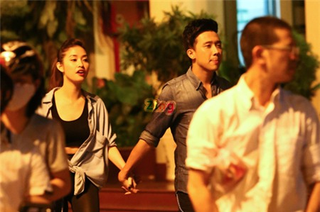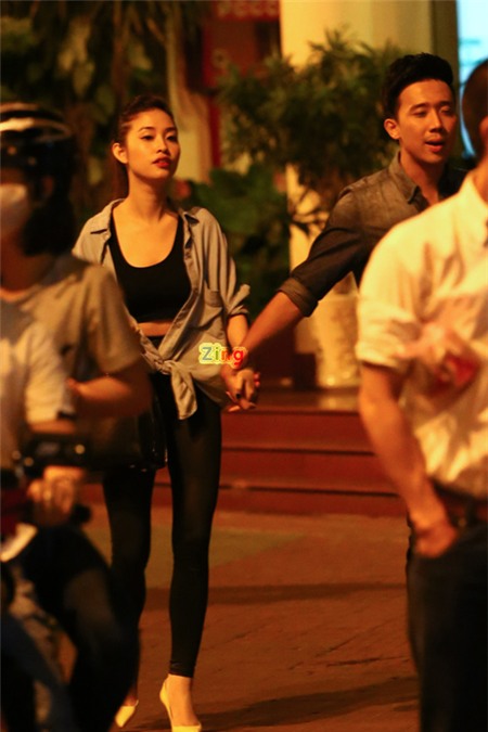 | Cả hai xuất hiện tại Nhà thi đấu Nguyễn Du, quận 1, TP.HCM tối qua. Trấn Thành nắm chặt tay bạn gái như sợ người yêu đi lạc. |
