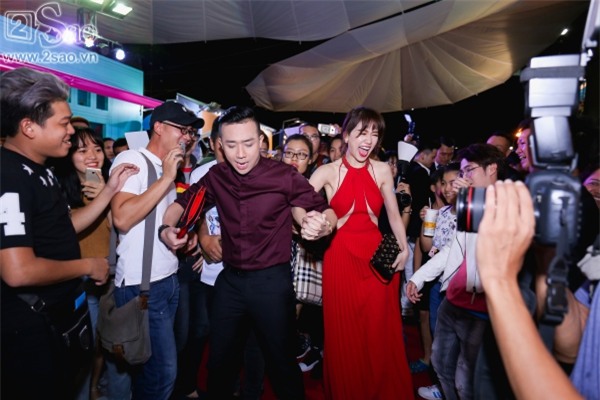 Sự xuất hiện của cặp đôi trai tài gái sắc thu hút sự quan tâm, hiếu kỳ của khách đến tham dự kiện. Đi đến đâu, cũng có rất đông khán giả vây quanh, khiến việc di chuyển từ cổng vào bên trong sân khấu khá khó khăn. Trấn Thành phải liên tục nắm tay dẫn vợ đồng thời hô to nhờ mọi người nhường đường.
