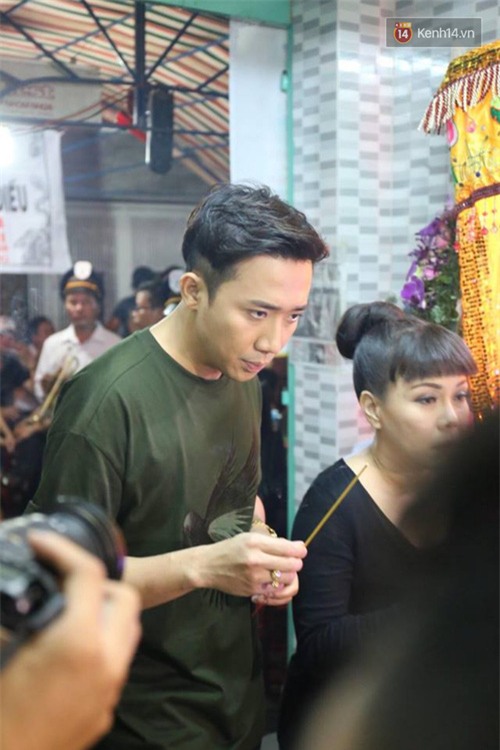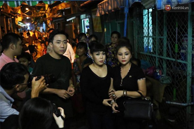 Đi cùng Trấn Thành là nghệ sĩ Việt Hương và nghệ sĩ Lê Giang. Ngay khi vừa xuất hiện, Trấn Thành đã lập tức thu hút sự hiếu kỳ của những người dân xung quanh. Rất đông người dân đã vây kín lối đi khiến các nghệ sĩ tới thăm viếng di chuyển khá khó khăn.