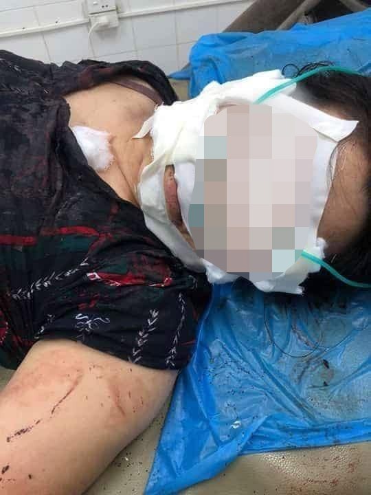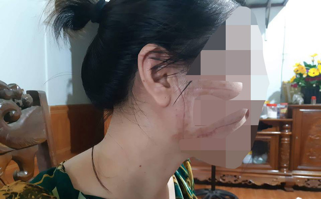Thời điểm chị O. mới bị chồng rạch mặt được đưa vào viện cấp cứu.