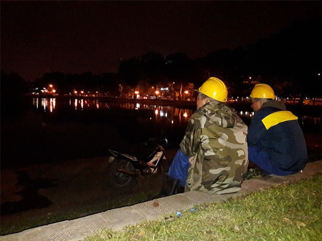 Nhóm công nhân chia làm nhiều tốp có mặt ở 4 phía hồ Thiền Quang. Có tốp 6 người, có tốp 2-3 người. Từ 22h đêm, quanh hồ Thiền Quang đã vắng người qua lại. Loáng thoáng góc hồ chỉ có một vài bà bán nước trụ lại phục vụ các bác xe ôm.