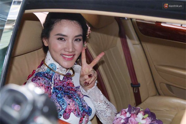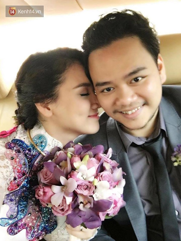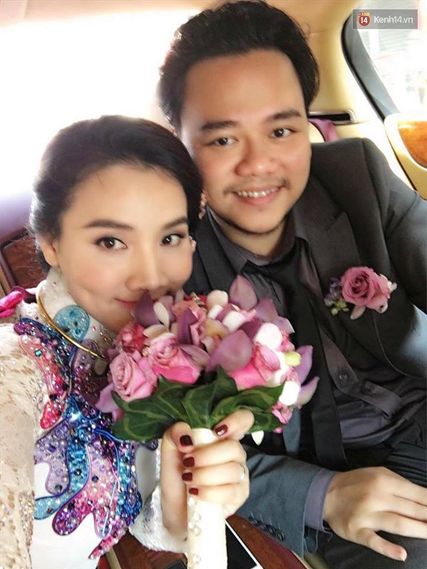 Nữ diễn viên cùng chú rể Nguyễn Hoàng Duy chụp ảnh selfie trước giờ khắc diễn ra hôn lễ