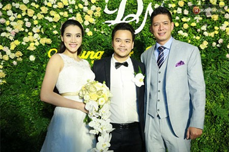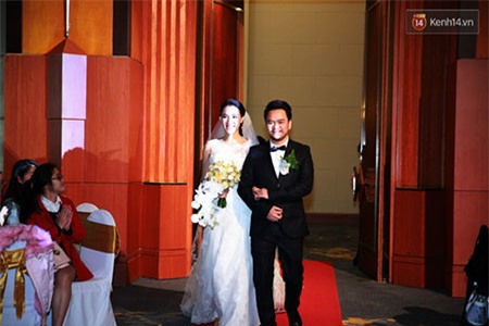 Khoảng 19h, vợ chồng Trang Nhung tiến vào sảnh tiệc trong tràn pháo tay chúc phúc từ bạn bè và người thân |