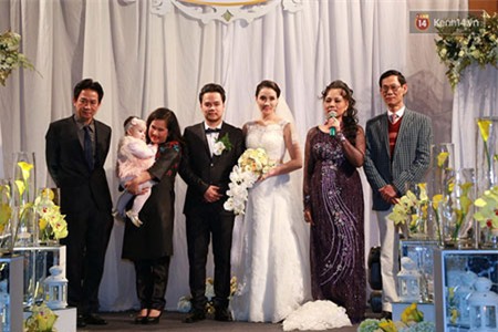 Mẹ chồng Trang Nhung bế cháu nội lên lễ đường để giới thiệu bé quan khách |