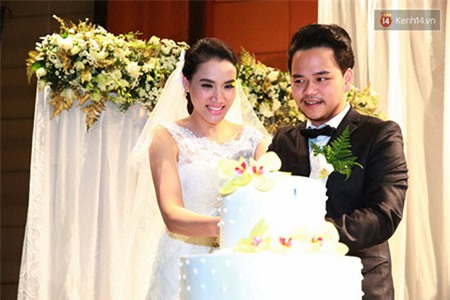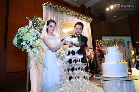 Vợ chồng nữ diễn viên "Scandal 2" tay trong tay rót rượu và cắt bánh cưới |