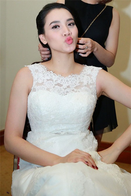 Khoảng hơn 17h, Trang Nhung thay trang phục cưới và trang điểm, chuẩn bị cho đêm tiệc |