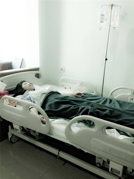 Bức ảnh ca sĩ Trang Pháp đang nằm viện. |