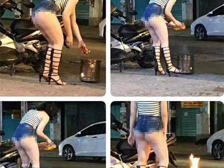 Tối qua cư dân mạng thi nhau lan truyền hình ảnh không được đẹp mắt của một cô gái đang đốt mã trong ngày rằm trong trang phục và tư thế như muốn "thách thức" mọi ánh nhìn.