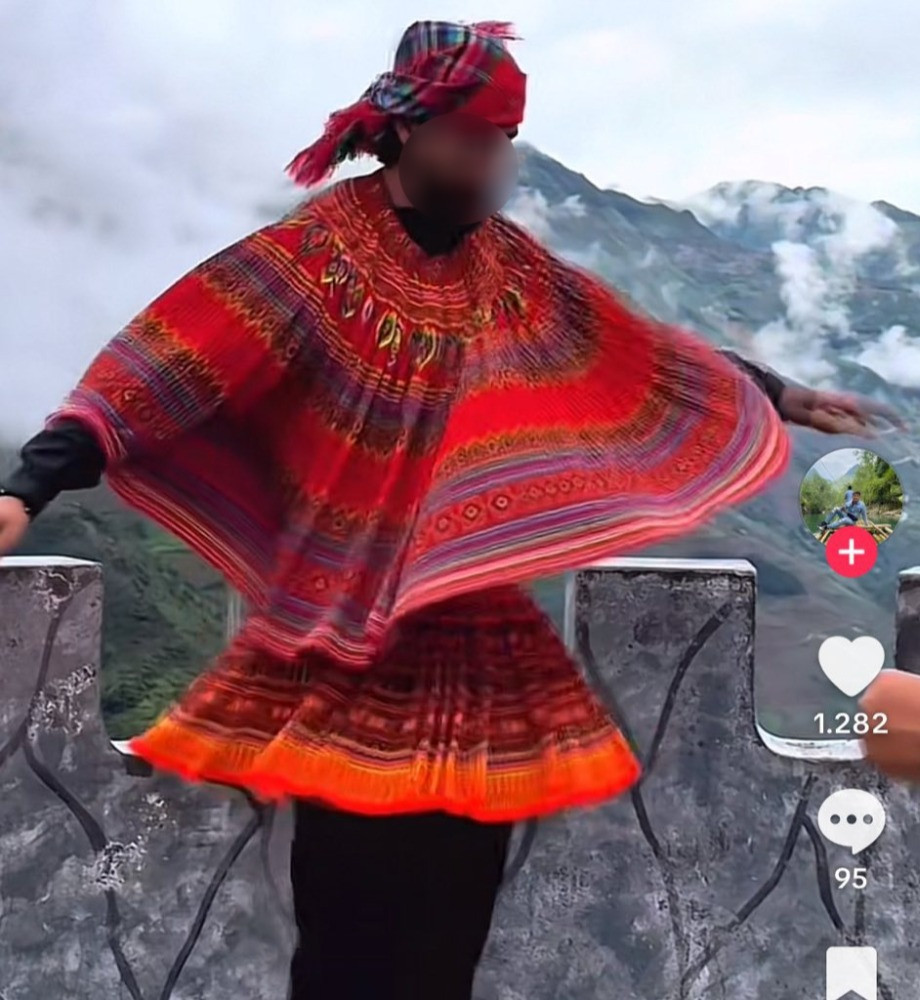 Theo anh Lợi, trên TikTok, không khó để bắt gặp những video ngắn, ghi lại hình ảnh nam du khách nước ngoài mặc váy truyền thống của phụ nữ người Mông. Có vị khách còn mặc váy lên cổ như chiếc khăn choàng rồi nhảy múa tại các địa điểm du lịch của Hà Giang (nay là Tuyên Quang).