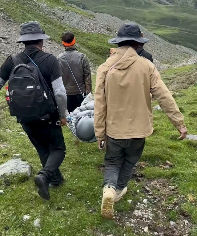Cụ thể, trong lúc chinh phục đỉnh núi tuyết cao hơn 4.000m, một nữ du khách họ Tiêu bị tảng đá lớn rơi trúng, khiến xương đùi gãy, các ngón chân dập nát và hoàn toàn không thể tự xuống núi.
