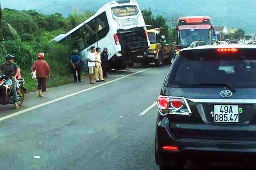 Phát hiện chiếc ô tô 49A - 249.55 dừng giữa đường và đang bị toán thanh niên bao vây, tài xế Dân phải đánh lái qua bên trái đường, lao thẳng xuống hục sâu gần 5m. Chiếc xe khách bị hư hỏng nặng phần đầu nhưng 2 người ngồi trên xe may mắn thoát nạn.