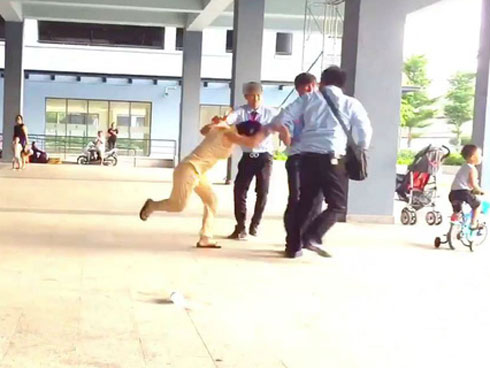Sau khi nhắc nhở không được, 2 bên đã xảy ra xô xát, rồi lôi đẩy nhau ngay giữa hồ. Nhiều người ra can ngăn nhưng người phụ nữ áo đen tỏ ra khá hung hãn, hất văng những cánh tay muốn giảng hòa.