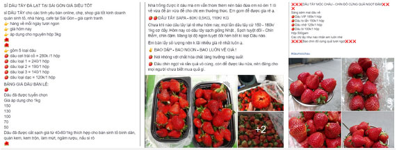 Đa dạng các cửa hàng bán dâu tây trên mạng mà chị em có thể đặt hàng ngay lập tức.