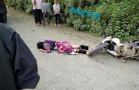 Khoảng 9h00 cùng ngày, khi tránh một chiếc ô tô tải chạy cùng chiều, chị Xay bất ngờ bị trượt ngã ra đường. Hậu quả, người mẹ 19 tuổi này tử vong tại chỗ, đứa con gái đang được địu trên lưng bị văng ra ngoài.