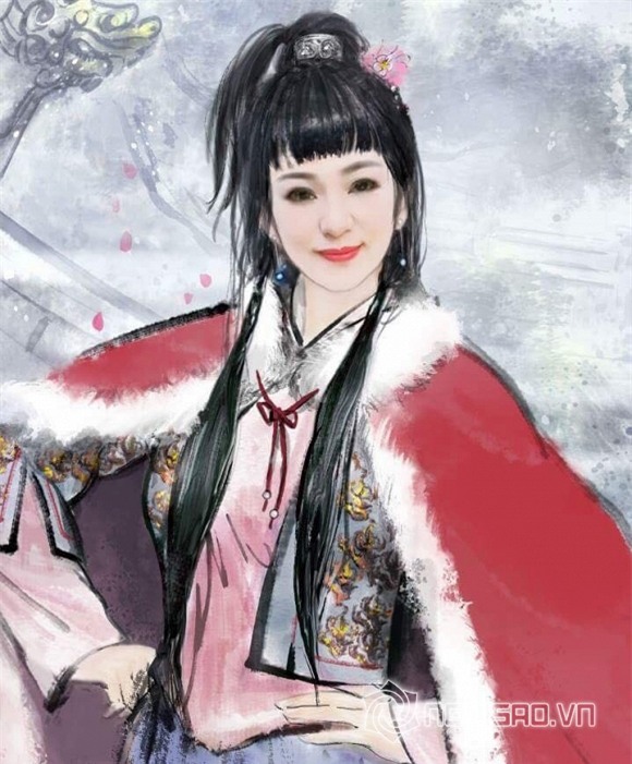 Lý Nhã Kỳ là một trong những sao Việt dẫn đầu trào lưu khi ghép mặt vào các bức tranh vẽ cổ trang.