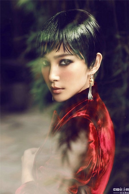 Lý Băng Băng đầy cá tính với đôi mắt khói kết hợp cùng kiểu tóc ướt và mái bằng lưa thưa được cắt tỉa khá mạnh tay.