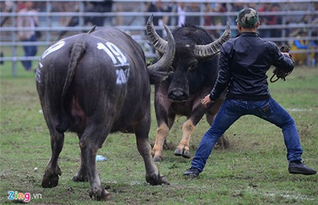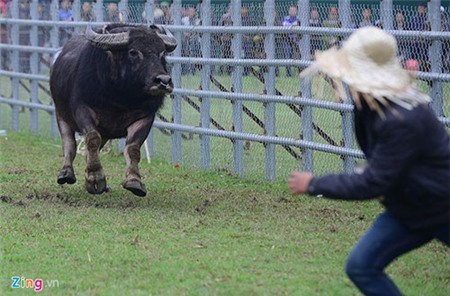 trâu số 17 (Vĩnh Phúc) bại trận và chạy khắp sân khiến lực lượng bắt