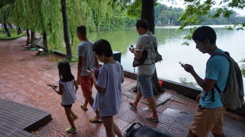 Mắt không ngừng nhìn điện thoại là hình ảnh thường thấy ở nhiều nơi. Ảnh: Lê Anh Dũng