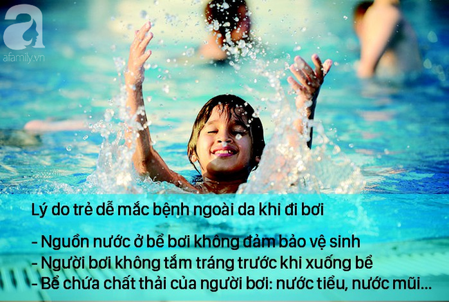 Bên cạnh việc bể bơi công cộng đều đông đúc, một số bể bơi không đảm bảo công tác vệ sinh, xử lý lọc nước chưa tốt, trẻ đi bơi chưa tuân thủ biện pháp vệ sinh cá nhân trước đó hoặc không được người lớn nhắc nhở…, bể bơi chứa nguồn chất thải do một số người kém ý thức như khạc nhổ, tè bậy, hỉ mũi, đờm dãi… Tất cả đều có thể dẫn đến nguy cơ trẻ mắc bệnh ngoài da, bên cạnh nhiều bệnh truyền nhiễm khác.