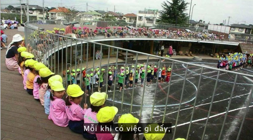 Các thầy cô giáo, các trường học và cha mẹ ở Nhật không quan tâm chúng sẽ học được gì ở trường, bởi mối quan tâm lớn nhất của họ là mỗi ngày đi học con được chạy nhảy bao nhiêu phút, đi bộ được bao nhiêu cây số và có được vui đùa thoải mái ngoài trời hay không.