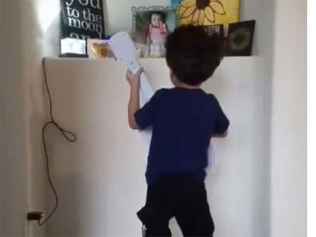 Đoạn clip ghi lại hình ảnh cậu bé 4 tuổi cầm chiếc guitar đồ chơi, nghêu ngao hát "Remember me" trước tấm ảnh em gái đã khuất khiến bất cứ ai xem qua cũng phải cảm động.
