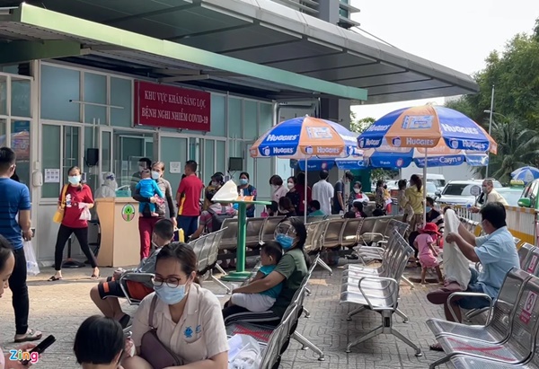Theo ghi nhận của Zing, số bệnh nhi đến khám, chữa bệnh, trong đó có nhiều em mắc Covid-19, tại các bệnh viện nhi khá đông. Nhiều phụ huynh phải xếp hàng để làm thủ tục và chờ kết quả xét nghiệm.