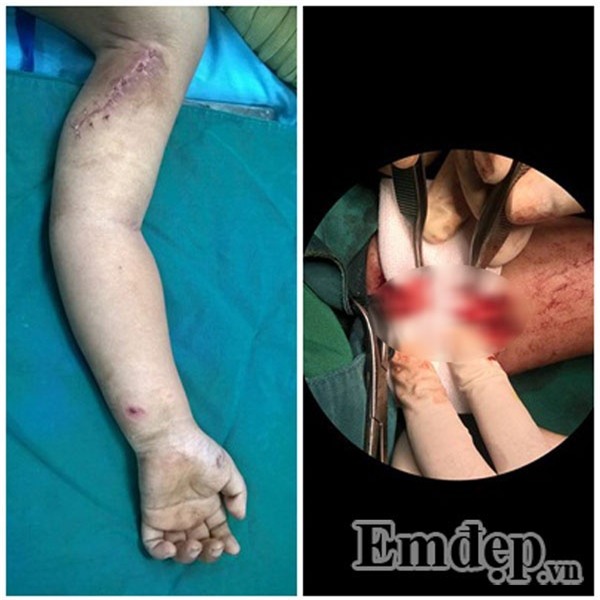 Sau đó, bé được phẫu thuật nối dây thần kinh bằng kỹ thuật vi phẫu tại Bệnh viện Sài Gòn ITO. Ca mổ nối lại các dây thần kinh nhỏ ở cánh tay phải thực hiện dưới kính hiển vi, độ khó rất cao và thời gian thực hiện thường kéo dài từ 4-6 tiếng. Hiện tại, sức khỏe của bé đã ổn định và cánh tay có thể cử động được.