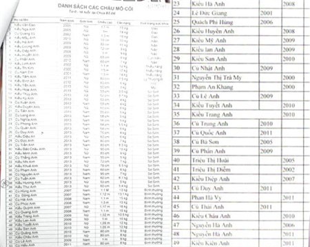 Đơn cử là bé Kiều Hương Anh. Năm 2013, cháu có trong bản danh sách ở chùa được chính sư Đàm Lan ký xác nhận. Nhưng bây giờ, nhóm thiện nguyện hỏi thì vị trụ trì khăng khăng, chùa không có cháu Kiều Hương Anh.